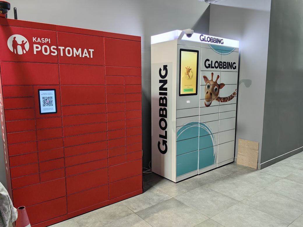 Локер Globbing расположен в тамбуре при входе со стороны улицы Омарова, напротив постамата Kaspi.