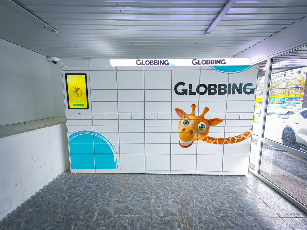 По улице Амангелды, на входе ТРЦ "Жибек Жолы", вы найдете локер Глоббинг.